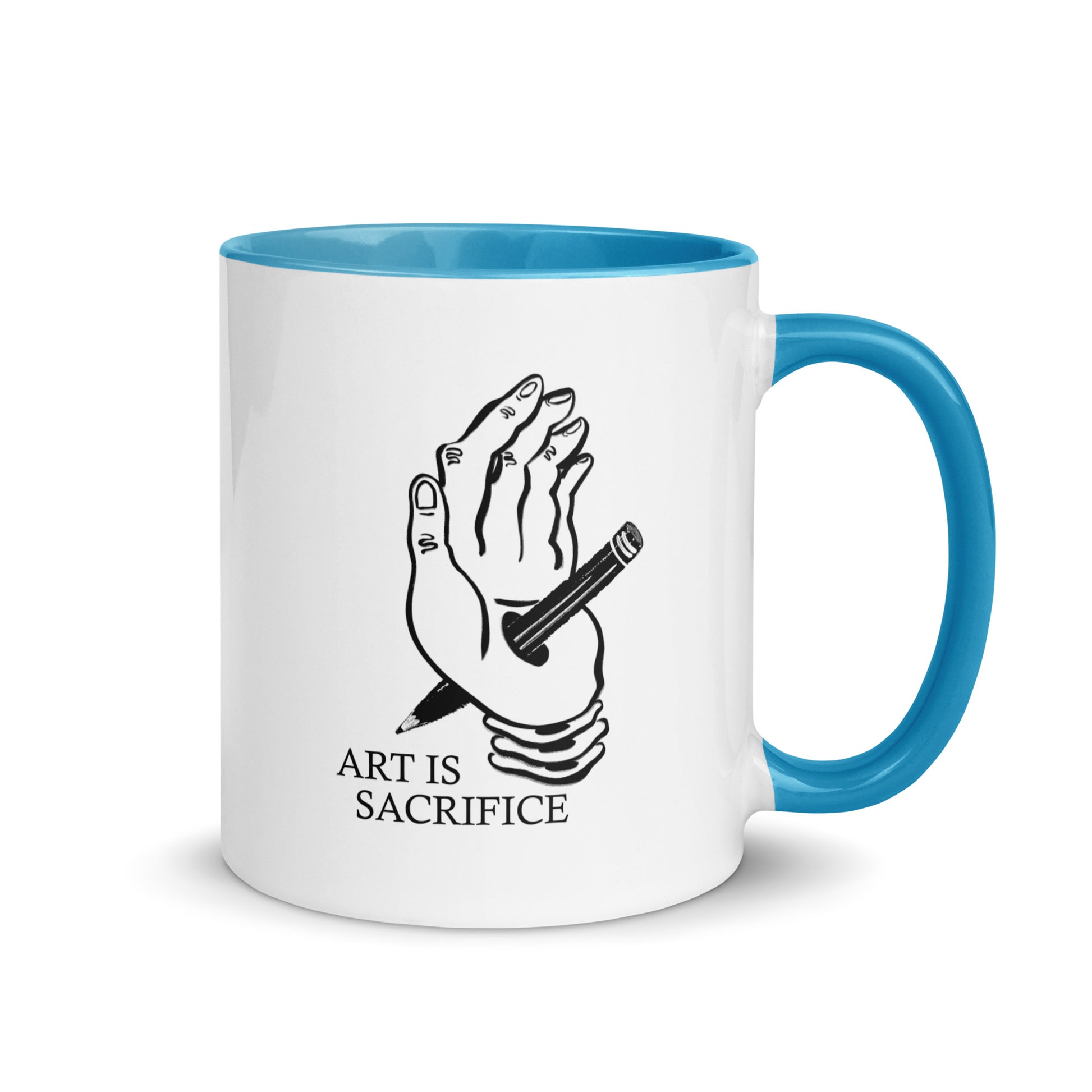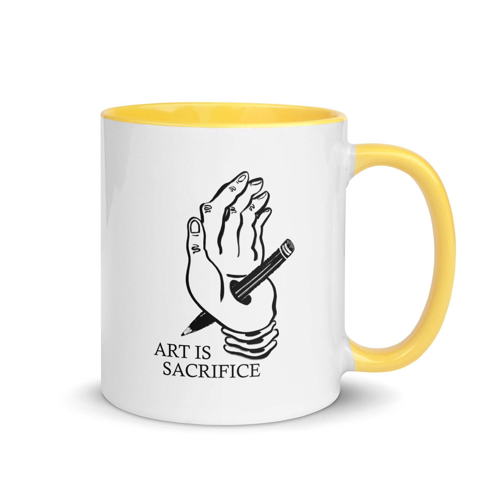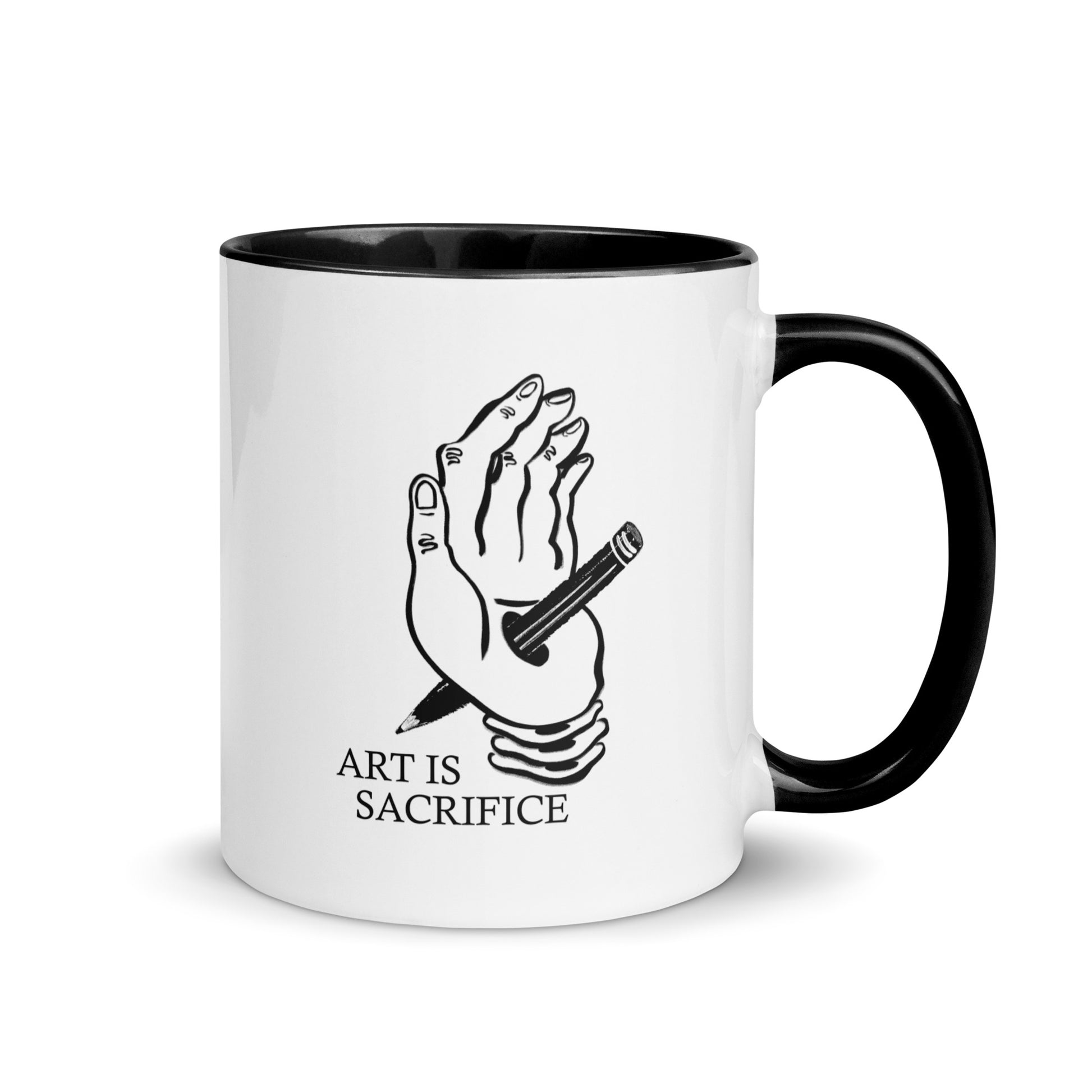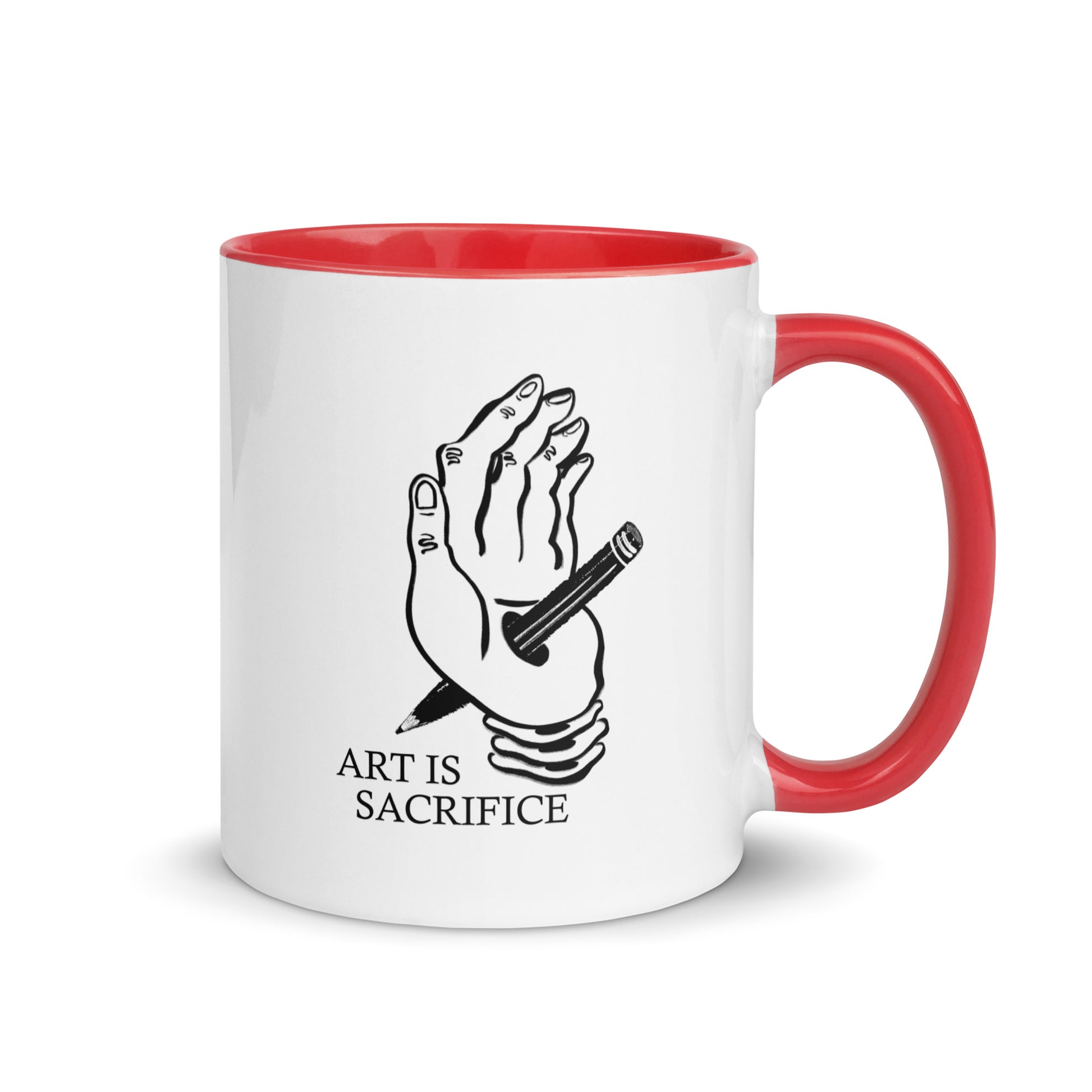 This striking icon we call Art is Sacrifice, symbolizes the challenges artists face and their unwavering determination to keep creating. Whether you're a painter, writer, musician, or creator in any form, this mug serves as a powerful reminder of the resilience needed to persevere in your craft.