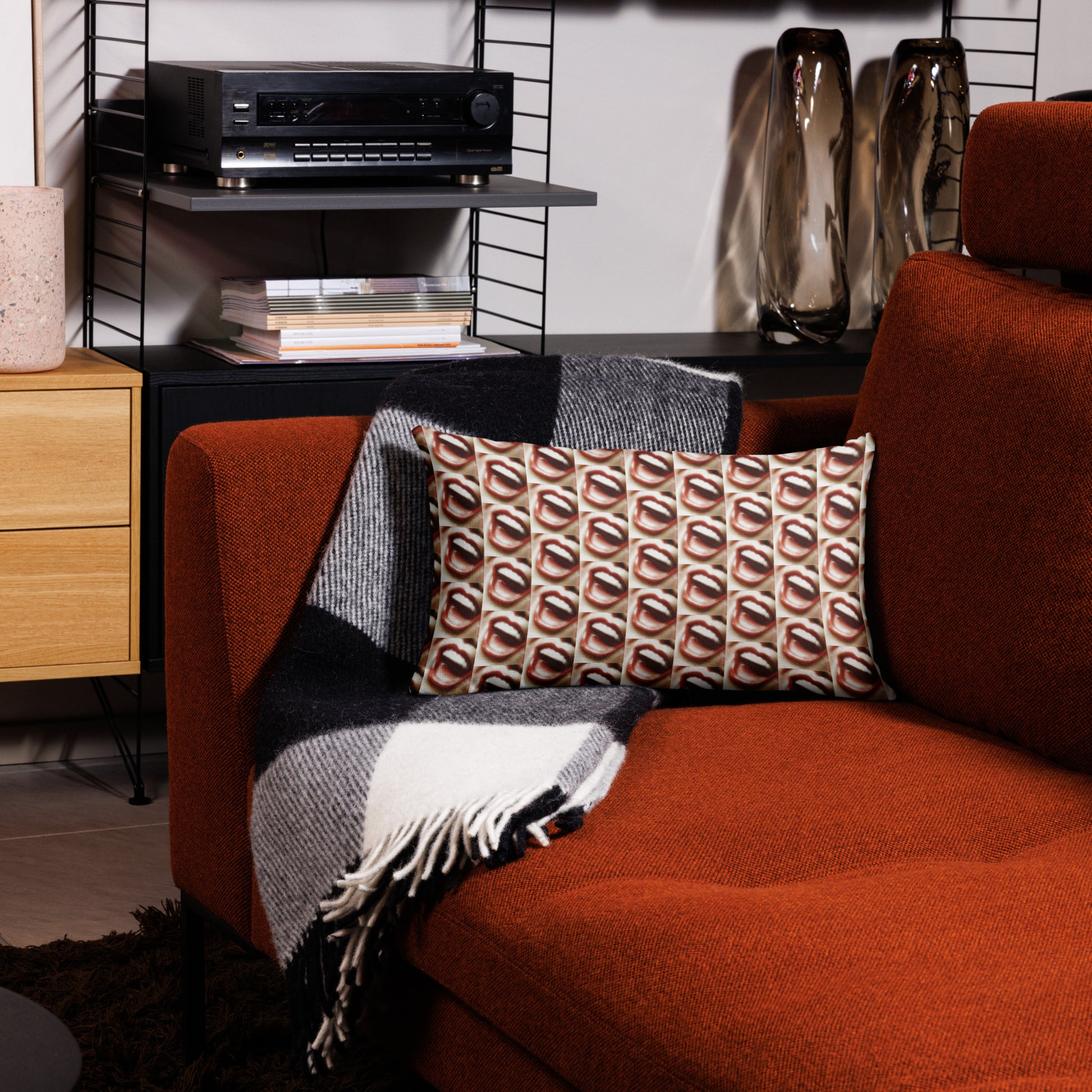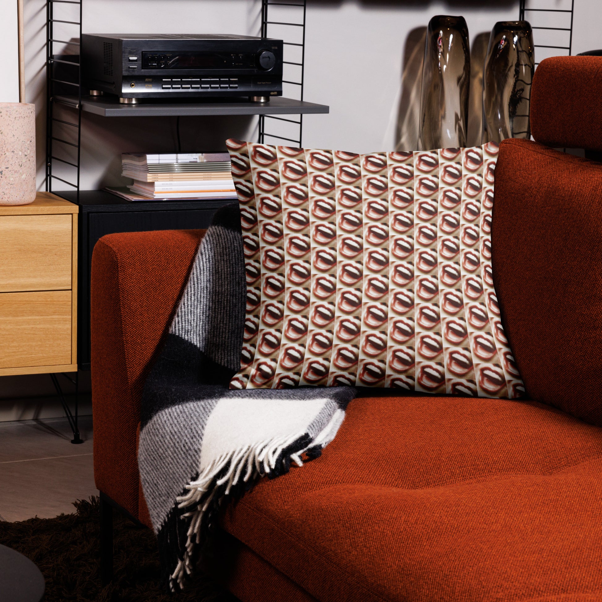 This premium throw pillow will add a touch of artistic flair to any content creator's setup. The vibrant all over graphic pattern serves as a constant reminder to unleash your own voice and create captivating content that resonates to your audience.