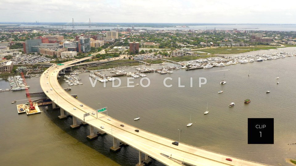 CLIP 4 - Charleston, SC downtown cityscape with bridge and marina in the foreground