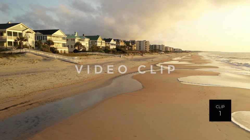 CLIP 10 - Litchfield Beach, SC beach front homes cast in golden morning light