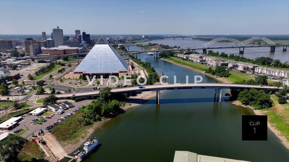 CLIP 9 - Memphis, TN big view of city skyline with Mississippi River on horizon