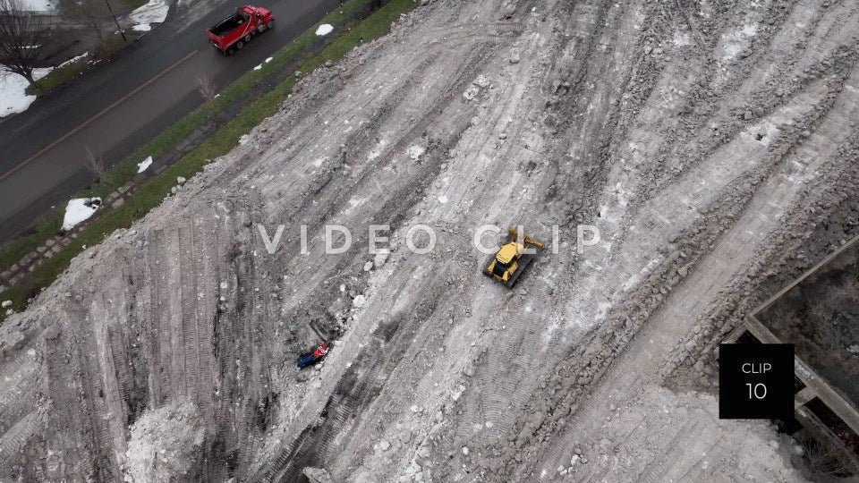 CLIP 3 - Buffalo, NY aerial view of snow mountain created by city workers after clearing streets