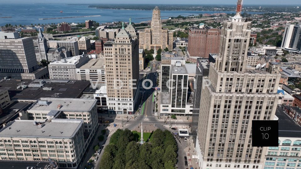 CLIP 10 - Buffalo, NY aerail downtown architecture rising up and pulling away