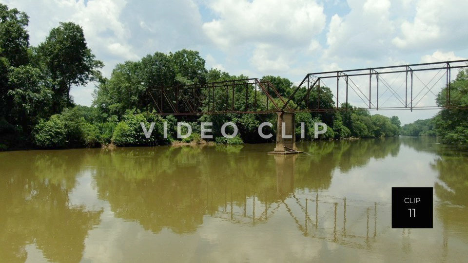 CLIP 11 - Chattahoochee River - Abandoned bridge crossing peaceful river in South Georgia