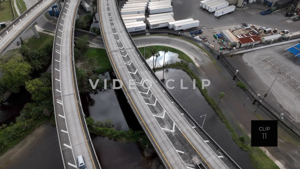 CLIP 11 - Jacksonville, FL looking down on flooded street underneath highway overpass