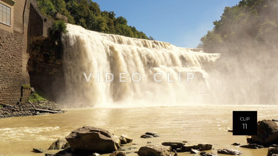 CLIP 8 - Rochester, NY Lower Falls gorge wall with mist from waterfall