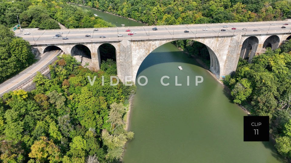 CLIP 15 - Rochester, NY Veterans Memorial Bridge with arch over the Genesee River