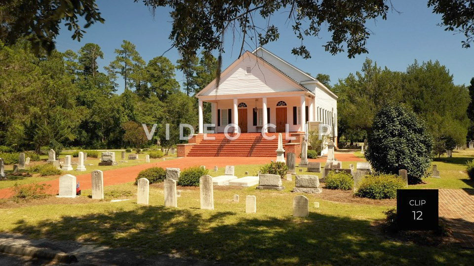 CLIP 17 - Indiantown Presbyterian Church shaded gravesites in front of church