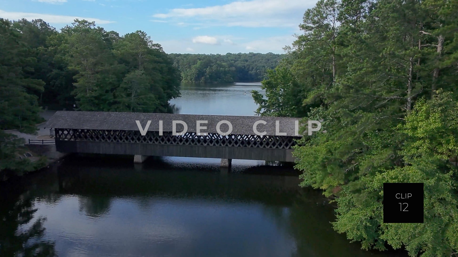CLIP 12 - Stone Mountain Park, GA aerial flight over covered bridge