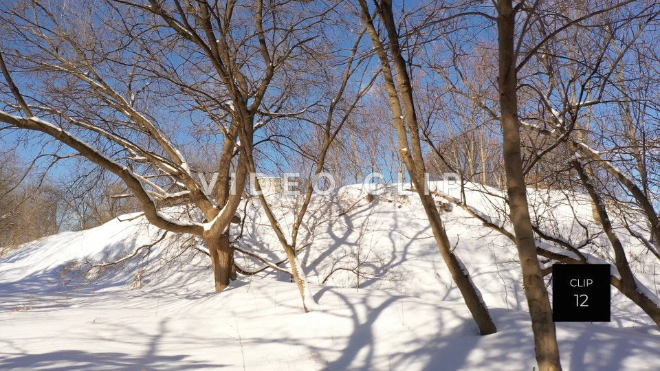 CLIP 12 - Snow covered hillside with trees in Winter under blue sky