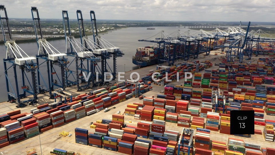 CLIP 9 - Charleston, SC Port of Charleston with ships docked loading and unloading containers