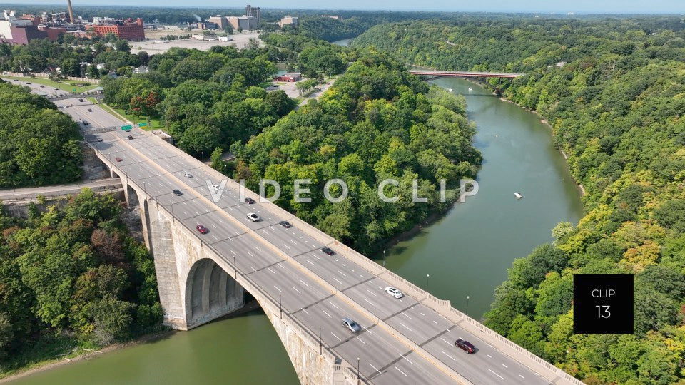 CLIP 10 - Rochester, NY Veterans Memorial Bridge with cars traveling over Genesee river