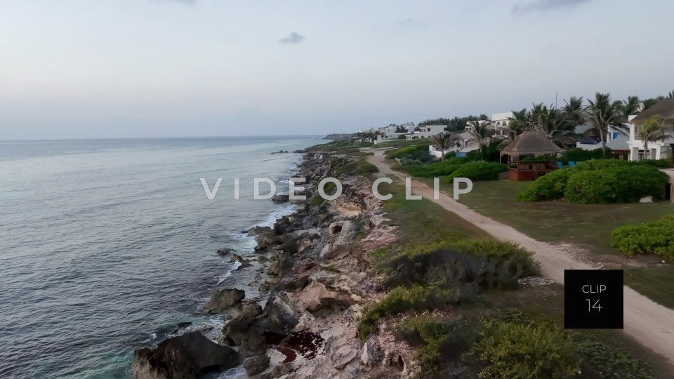 CLIP 6 - Isla Mujeras, Mexico aerial flight along coast over road and vacation homes