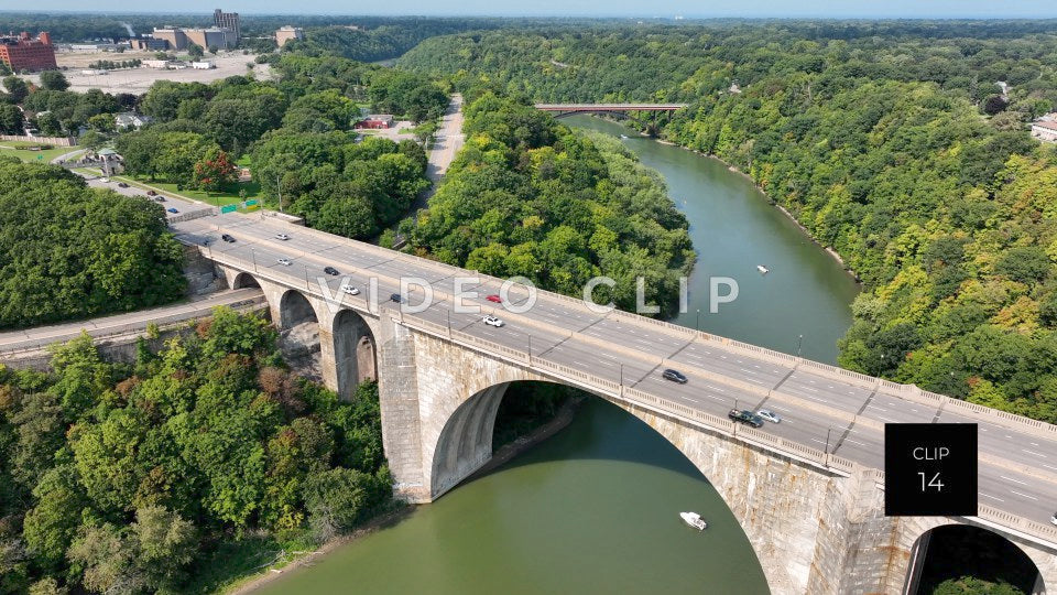CLIP 15 - Rochester, NY Veterans Memorial Bridge with arch over the Genesee River