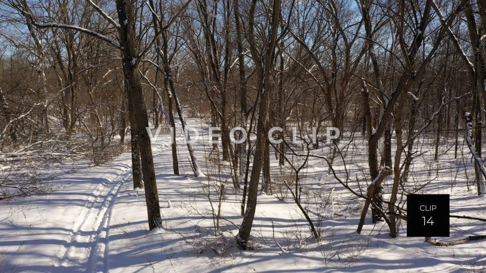 CLIP 17 - Snow mobile and walking trail cuts through forest in Winter