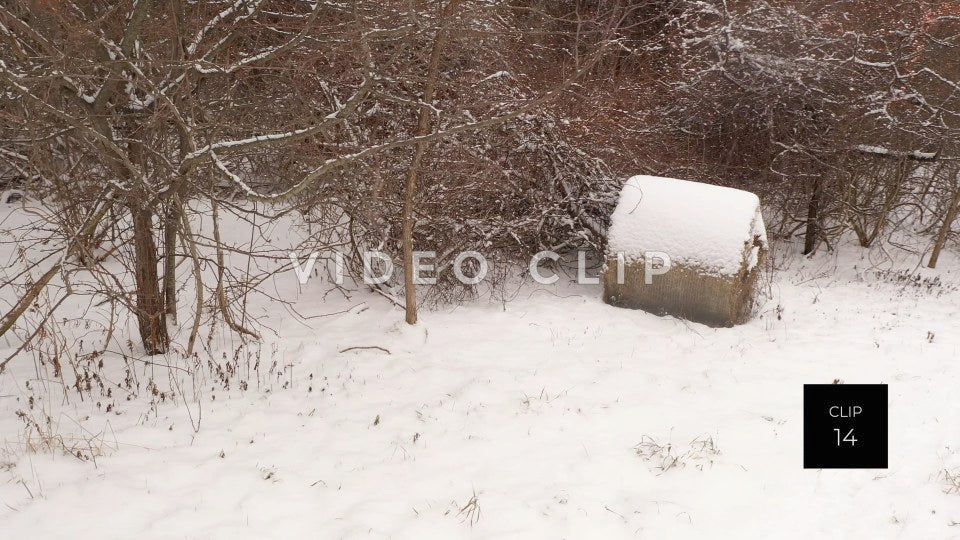 CLIP 14 - Hay bail in pasture covered in freshly fallen snow during Winter