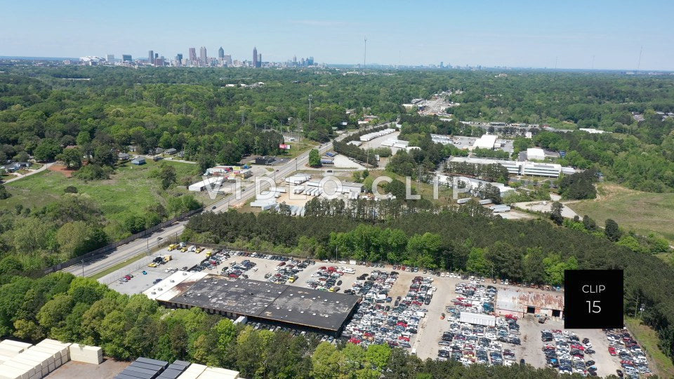 CLIP 15 - Atlanta, GA flying over industrial complex towards city skyline