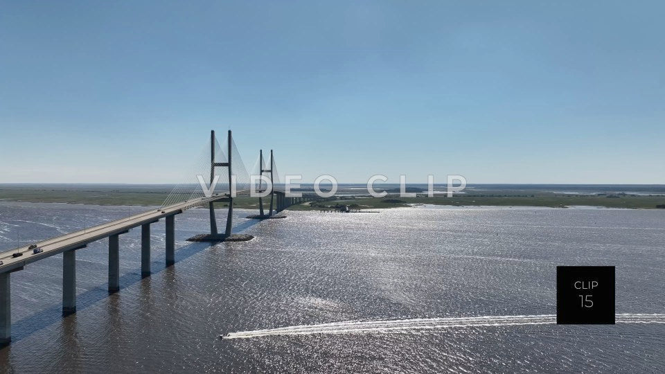 CLIP 17 - Brunswick, GA close up of Sydney Lanier Bridge over coastal waterway