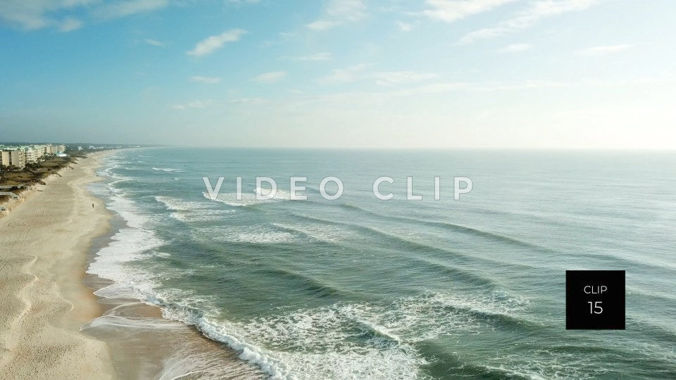 CLIP 14 - Litchfield Beach, SC looking down as waves break on the sandy shore during morning