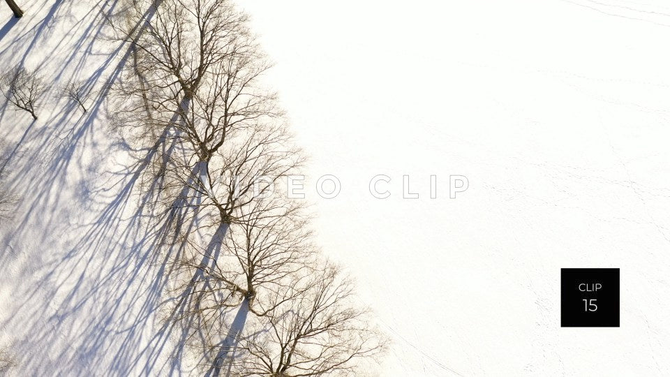 CLIP 13 - Looking down on tree orchard by snow covered field in Winter at Ellison Park, NY