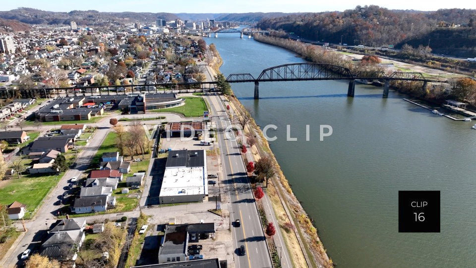CLIP 16 - Charleston, WV drone flight by river towards downtown