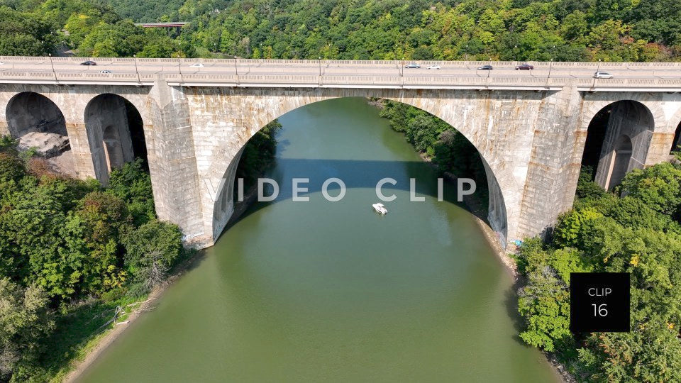 CLIP 15 - Rochester, NY Veterans Memorial Bridge with arch over the Genesee River