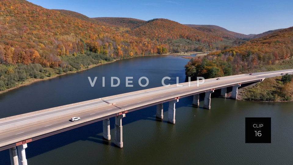 CLIP 14 - Tioga Dam and Reservoir, PA cars and trucks driving over bridge