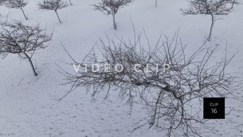 CLIP 9 - Slow flight towards frozen tree orchard in Winter