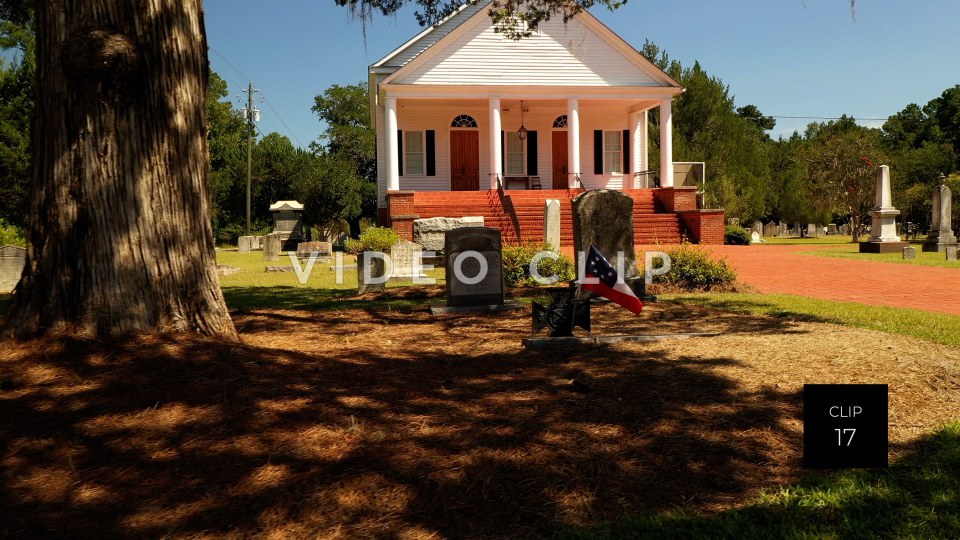 CLIP 17 - Indiantown Presbyterian Church shaded gravesites in front of church