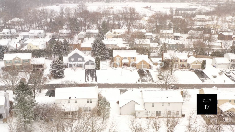 CLIP 17 - Small town neighborhood covered in snow during Winter freeze