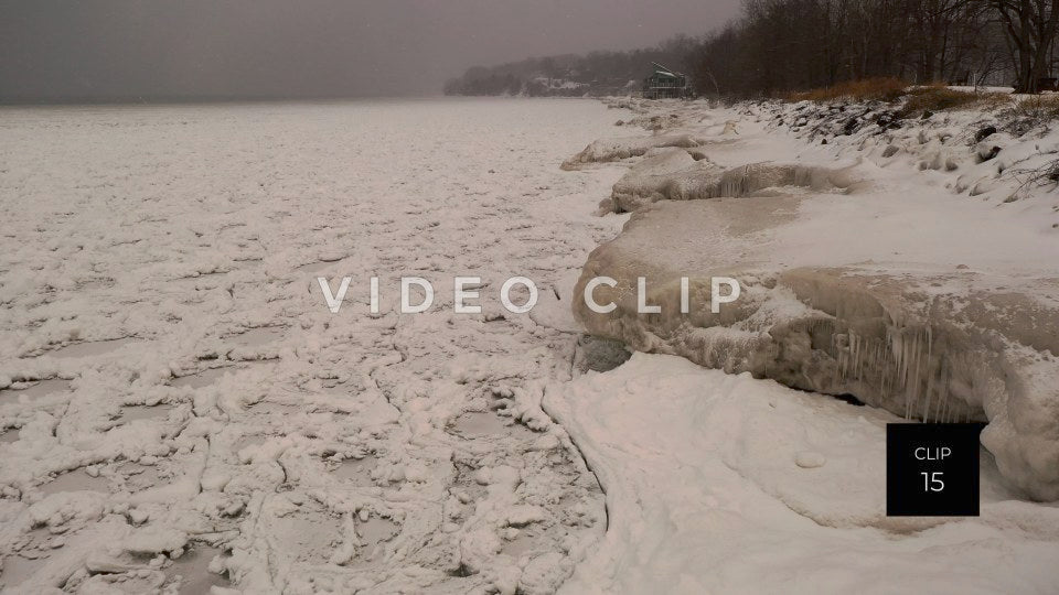 CLIP 12 - Winter Lake Ontario frozen shoreline