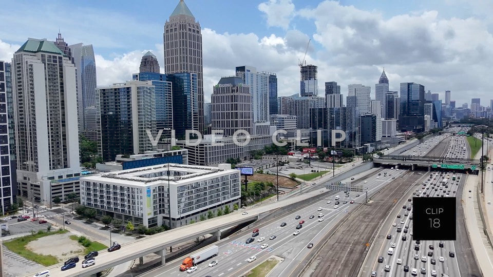 CLIP 18 - Atlanta, GA Midtown skyline with 75/85 Interstate traffic