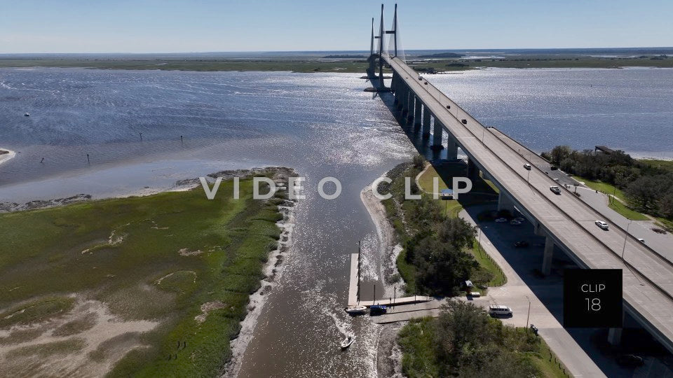 CLIP 17 - Brunswick, GA close up of Sydney Lanier Bridge over coastal waterway