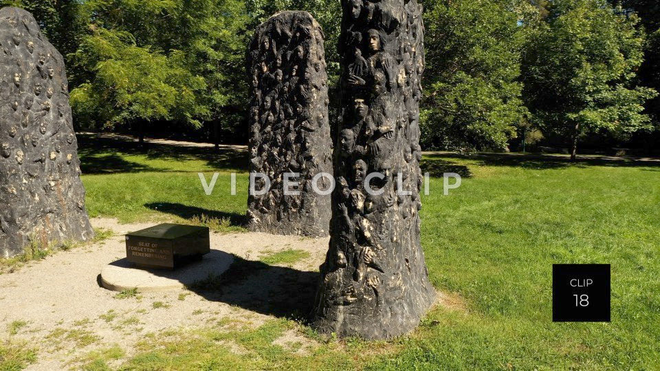 CLIP 19 - Rochester, NY slow turn around sculpture in Middle Falls Park - Seat of Forgetting and Remembering