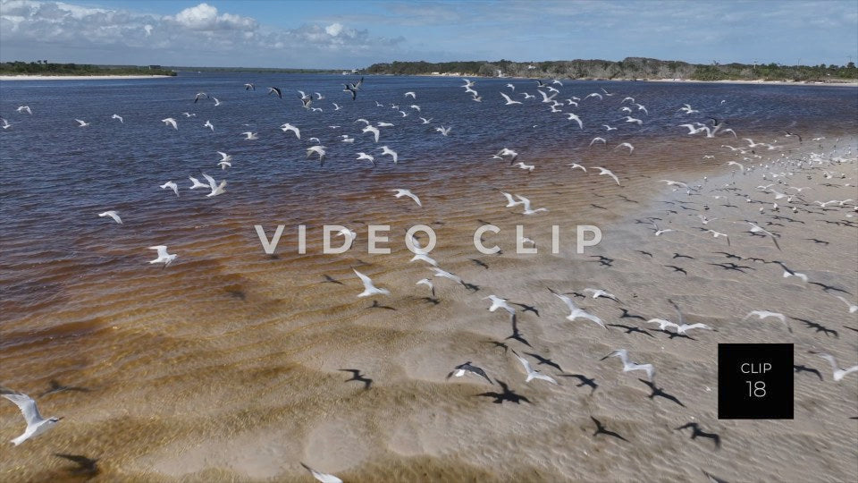 CLIP 18 - St Augustine, Florida shorebirds take flight over Matanzas inlet