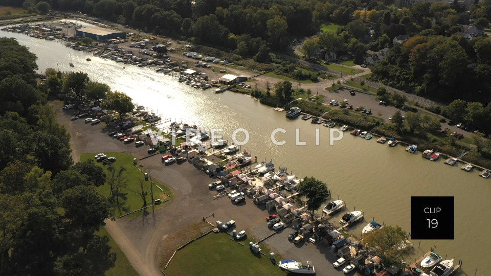 CLIP 19 - Sunlight on boats along Genesee River at Marina Rochester, NY