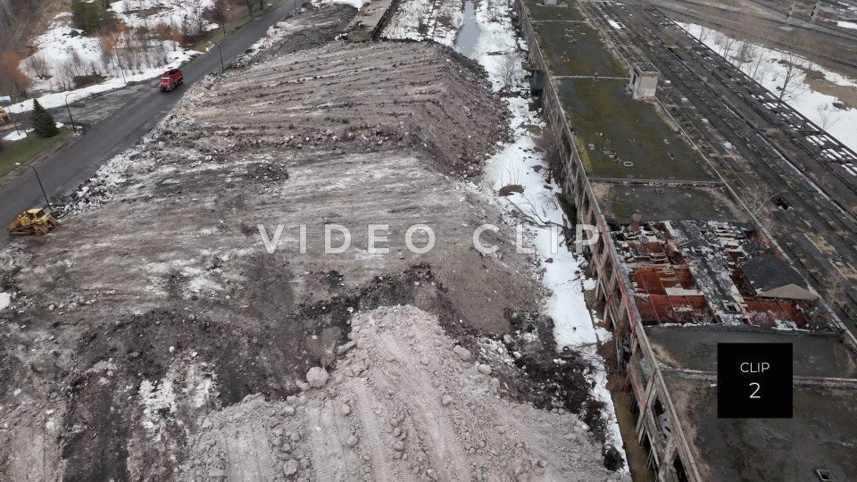 CLIP 7 - Buffalo, NY city workers deposit snow from streets beside abandoned building