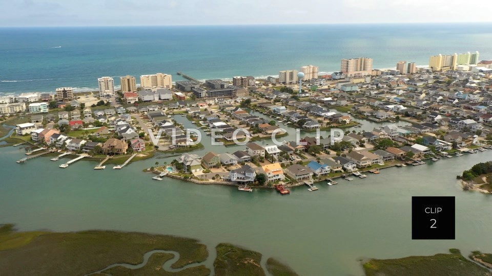 CLIP 5 - Cherry Grove Beach, SC flying over vacation beach houses and homes by the tidal marsh