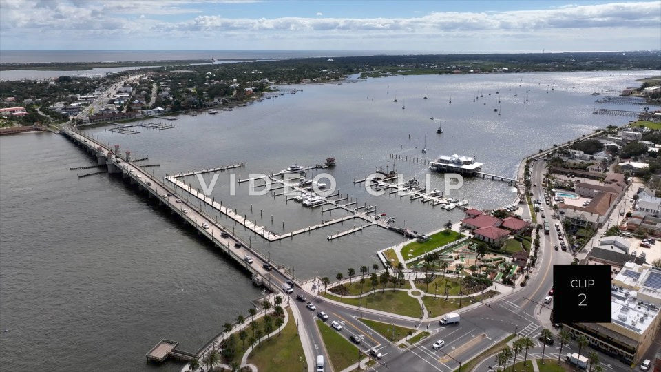 CLIP 2 - St Augustine, Florida slow flight over marina with sail boats in inlet