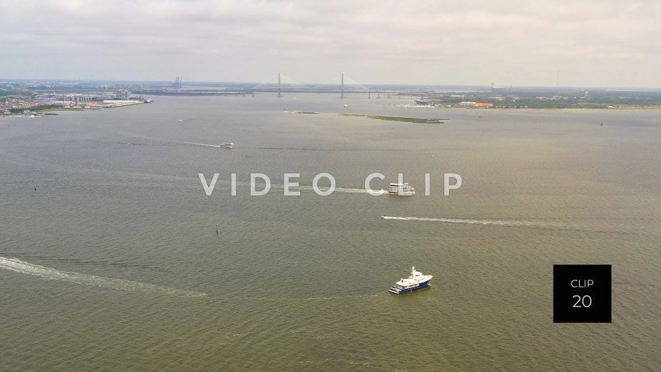 CLIP 20 - Charleston, SC harbor view with boats passing by