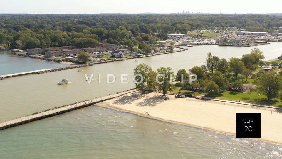 CLIP 3 - Aerial of Ontario Beach Park and Genesee river at Charlotte Pier Rochester, NY
