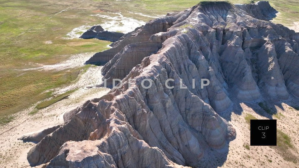 CLIP 6 - Badlands, SD flying over top of Butte while looking down on formations