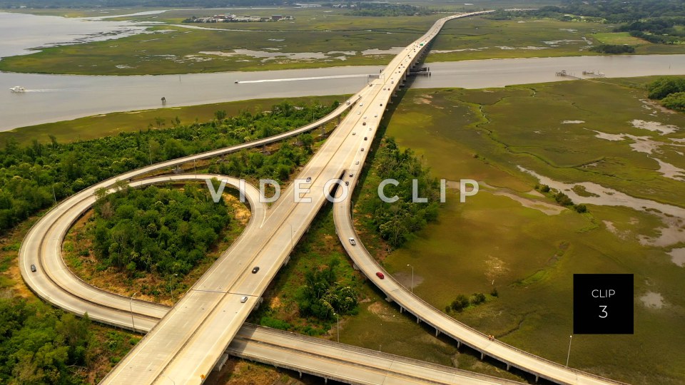 CLIP 3 - Charleston, SC highway with cars traveling over salt water marsh