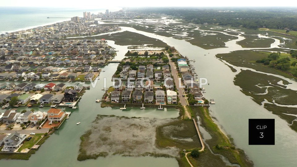 CLIP 5 - Cherry Grove Beach, SC flying over vacation beach houses and homes by the tidal marsh