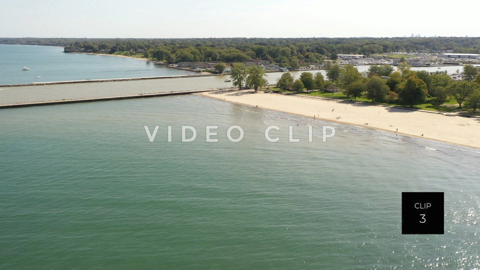CLIP 3 - Aerial of Ontario Beach Park and Genesee river at Charlotte Pier Rochester, NY