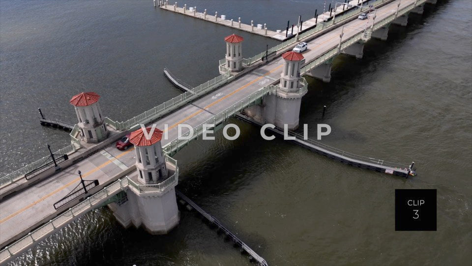 CLIP 3 - St Augustine, Florida dramatic turn over Bridge of Lions then rising up over inlet