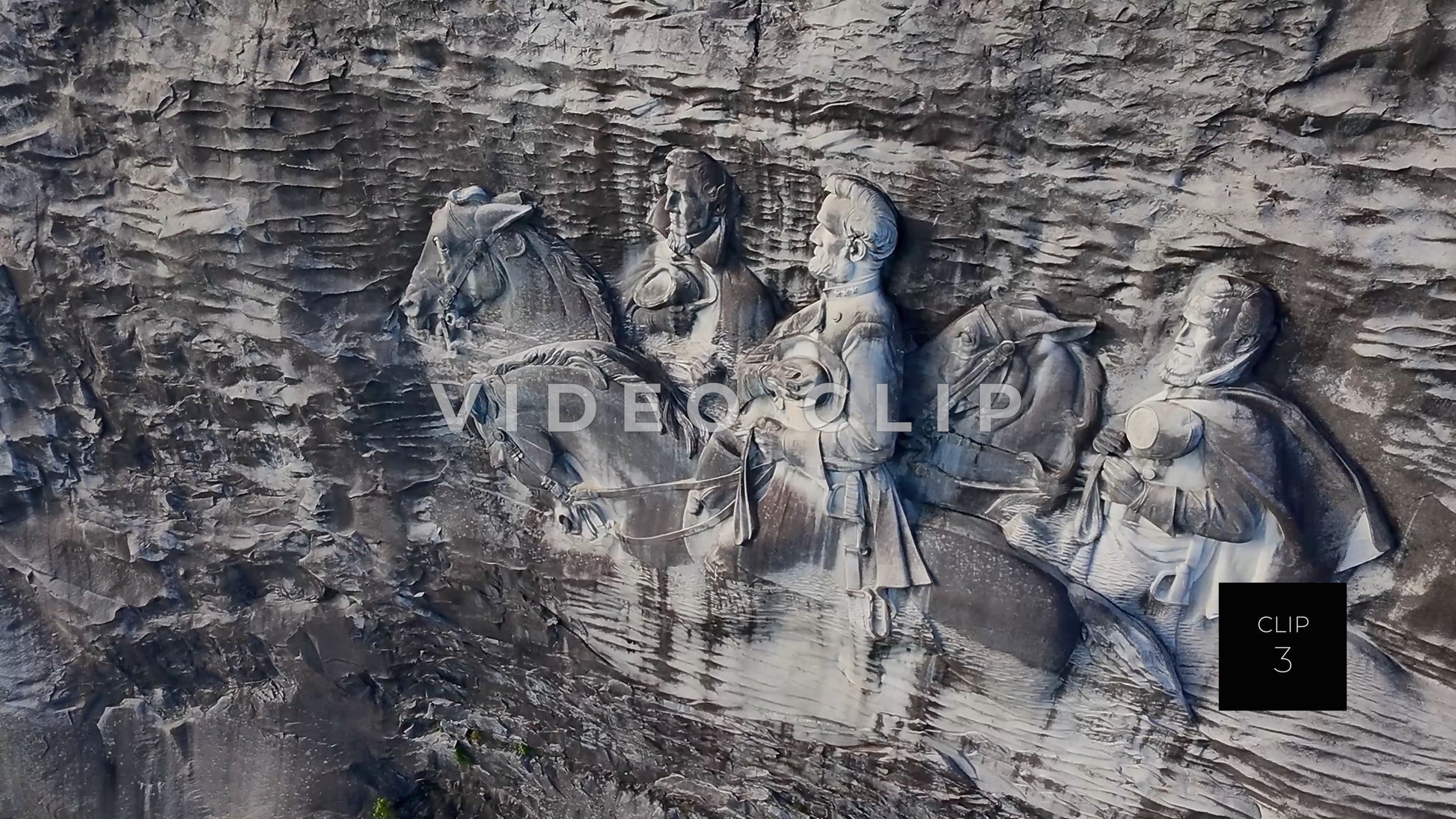 CLIP 2 - Stone Mountain Park, GA Close up of Confederate Memorial Carving depicting Stonewall Jackson, Robert E. Lee and Jefferson Davis