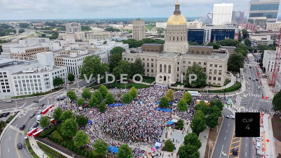 CLIP 3 - Atlanta, GA No Kings Protest - Aerial camera focused on protestors in front of Georgia State Capitol
