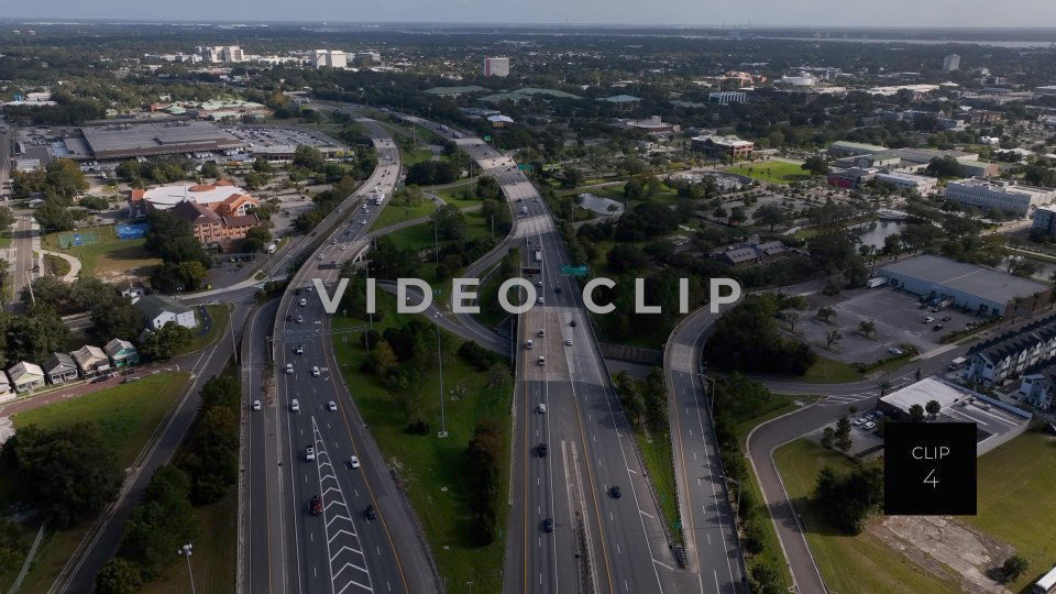 CLIP 4 - Jacksonville, FL looking down on interstate highway I-95 then tilting up towards horizon