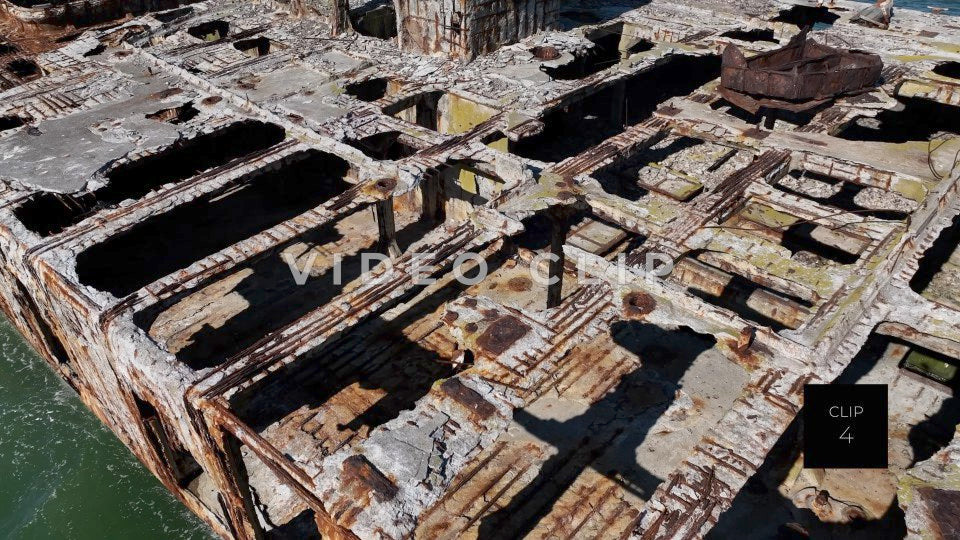 CLIP 4 - Kiptopeke Concrete Ships, VA close up flight over main deck